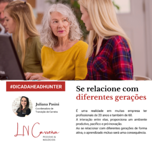 #DICA DA HEADHUNTER A dica da headhunter de hoje é sobre “Se relacione com DIFERENTES GERAÇÕES” Não fique de fora e compartilhe nas suas redes. “Lembre-se