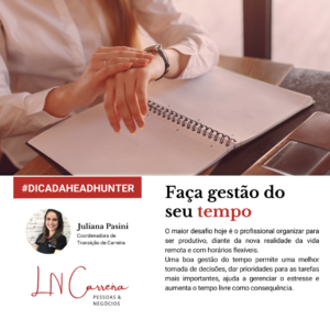 #DICA DA HEADHUNTER A dica da headhunter de hoje é sobre “Faça gestão do seu tempo.” Não fique de fora e compartilhe nas suas redes. “Lembre-se